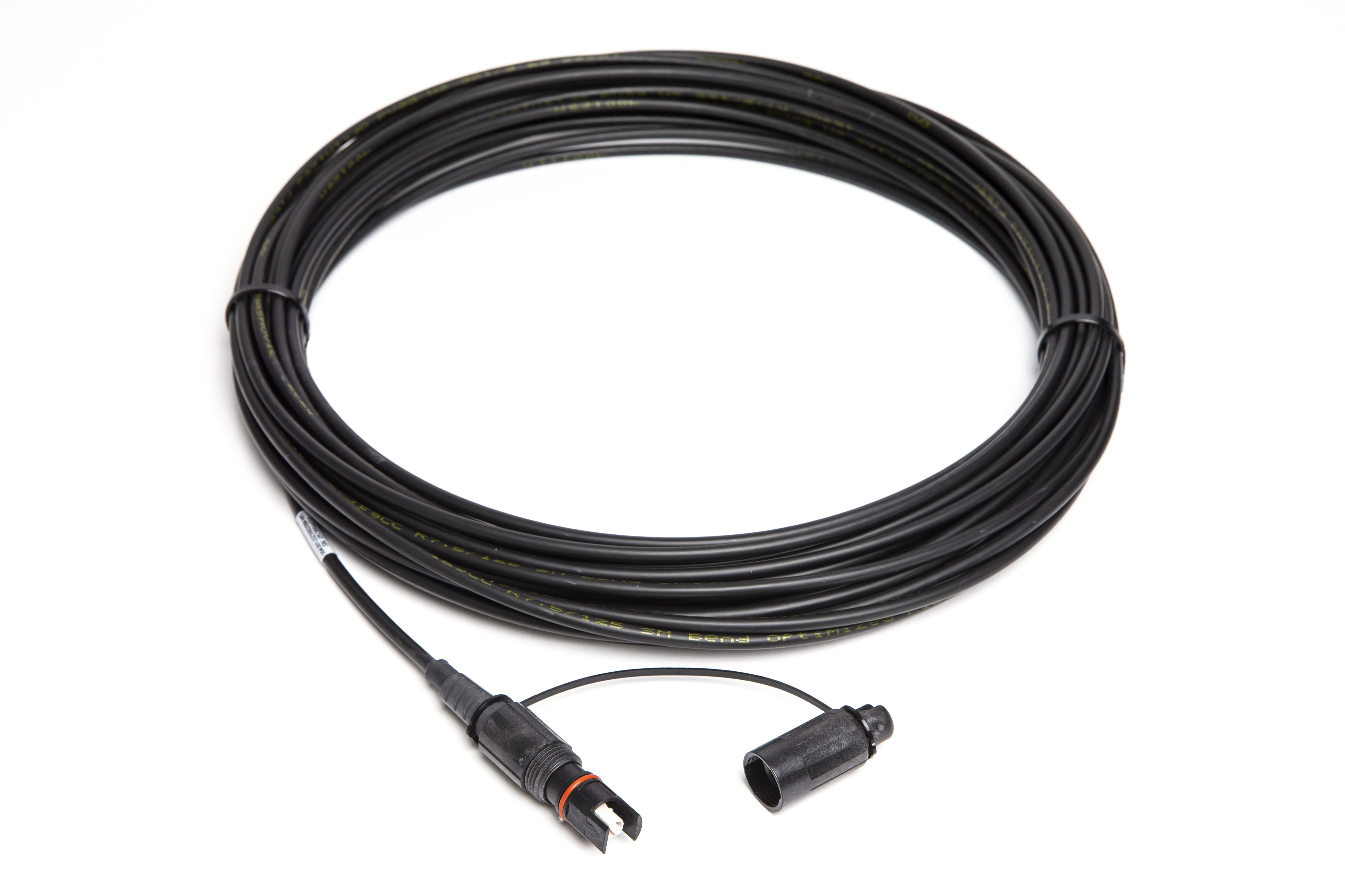 Cable óptico de acometida con conector reforzado tipo Optitap para instalaciones en exterior en condiciones de intemperie por tendido aéreo, canalización o fachada como en tramos finales en interior de edificios. Utiliza fibra G657.A2 con bajo radio de curvatura. El cable se utiliza en la red de dispersión FTTH para la instalación de altas individuales de cliente en tramos y tendidos de exterior desde cajas terminales ópticas con adaptadores reforzados tipo Optitap. Estructura: Tubo holgado relleno de gel. Diámetro del cable: 5 mm.