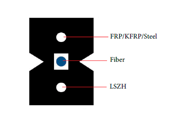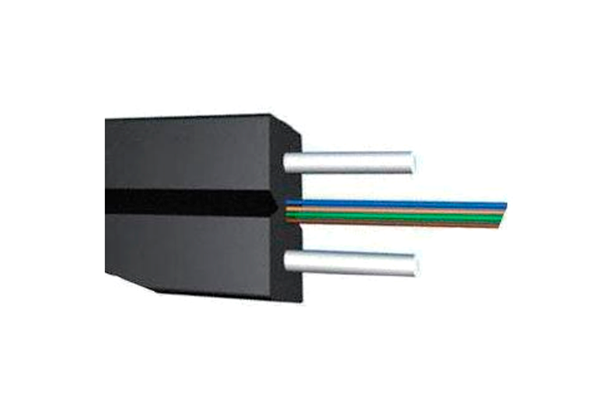 Acometida constituida por una fibra óptica, cubierta plana color blanca, diseñado principalmente para interior con conector SC/APC con elementos de refuerzo de plástico reforzado con fibra (FRP) a cada lado.