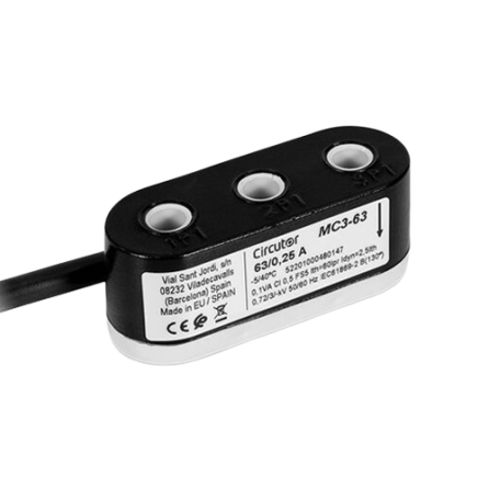 000-0039 - Transformador trifásico MC3 para medir intensidades de hasta 63A y con una ventana de paso de 7,1mm, con secundario de 250mA.