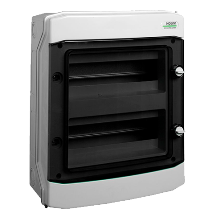 000-1042 - Cajas de plástico de superficie CHINT de la serie PHS para montaje interior/exterior de alta resistencia. 8 módulos, 1 fila. Puerta transparente. Grado de protección: IP 65.