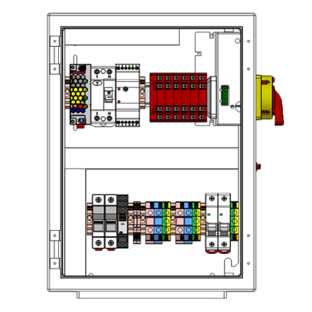 004-0010 - Caja de respaldo (Backup) para los inversores monofasicos híbridos de Huawei. Equipado con conmutador motorizado de 3 posiciones 2P (1F+N), hasta 40A a 230V AC, para abrir el circuito en caso de un corte de energía. Salida cargas prioritarias protegida con magnetotérmico 2P 40A y diferencial A-HI 30mA.