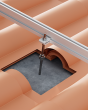 404-0862 - Soporte coplanar anodizado atornillado para cubierta de teja. Superficie de anclaje a losa de hormigón y viga de madera. Tornillería de anclaje, tornillo doble rosca con arandela de sellado. Incluye junta de estanqueidad.