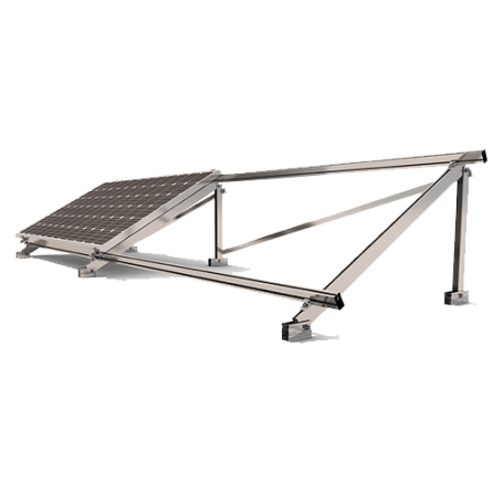 404-1008 - Soporte inclinado para cubierta metálica o cubierta plana de hormigón. En cubierta metálica el anclaje sería a correas o a chapa con subestructura necesaria, mientras que en cubiertaplana el anclaje sería a cubierta de hormigón o contrapesos de hormigón continuo. La tornillería de anaclaje no está inlcuida.