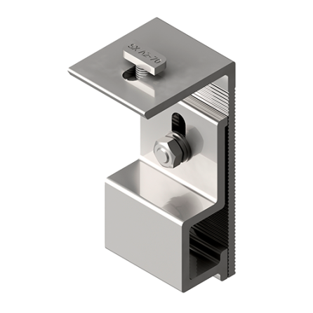 404-1432 - Fijación para cubiertas metálicas de junta alzada o engatillada. Anclaje a chapa sin taladrar.