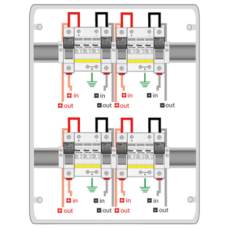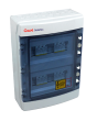 004-0022 - Caja de protecciones en DC para 4 string compuesta por portafusible y fusible de 20A y protector sobretensión tipo II, válida para una tensión máxima de 1000Vdc. Tiene un grado de protección IP65 y IK08.