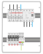 004-0085 - Caja de conexión trifasica equipada con protección automático, diferencial y sobretensiones. La caja incluye interruptor automático 3P+N de 100A curva C, protector de sobretensiones tipo II y diferencial tetrapolar tipo A Hi de 125A/300mA protegido contra disparos intempestivos. Viene con espacio disponible para colocar un medidor FV.